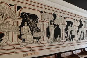 Ant rytino pastato puikuojasi lotyniškas užrašas „Domus Philologiae“ – liet. „Filologijos namai“, jo antrojo aukšto Mūzų vestibiulį puošia garsaus Lietuvos grafiko Rimtauto Gibavičiaus freska, sukurta dar 1969 m. Freska vaizduoja devynias mūzas – menų globėjas. Ilgas koridorius veda prie kitos, grafiko freskos, pagerbiančios žymiausius Lietuvos istorikus, poetus, dailininkus ir architektus. Dešinėje pusėje, buvusioje Užsienio kalbų skaitykloje, Šarūno Šimulyno freska „Mažvydas Ragainės fone“. Koridoriuje prie skaityklos išsaugotos autentiškos medinės lubų sijos. Klasikinės filologijos katedros vestibiulį, kurį puošia dailininko Vitolio Trušio sukurta mozaika iš lauko akmenų, vaizduojanti pagoniškus lietuvių dievus. Šalia įsikūrusi Klasikinės filologijos katedra.