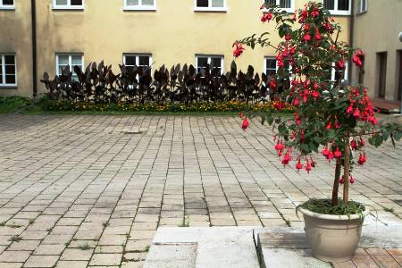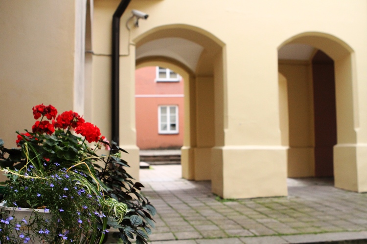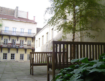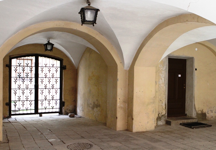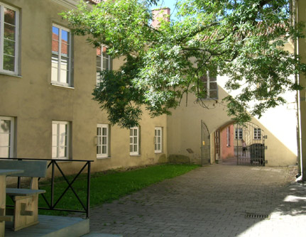 M. K. Sarbievijaus kiemas. Antras pagal dydį Vilniaus universiteto kiemas šiandien yra pagrindinis Filologijos fakulteto kiemas. XVI a., Vilniaus kolegijos laikais, kiemas vadintas šeimyniniu. Šiauriniame korpuse buvo bravoras su salykline, stalių dirbtuvės, šeimyninė, kepykla, svirnai grūdams, arklidės, o rytiniame – gyveno kalviai, batsiuviai, siuvėjai, knygrišiai. Bravoro vietoje, dabartinio dekanato pastato I aukšte, šiuo metu įsikūręs Skaitmeninės filologijos centras. Panaikinus jėzuitų ordiną, šie pastatai prarado ūkinę funkciją. 1799–1801 m. šiaurinį korpusą rekonstravo Mykolas Šulcas, o XIX a. pradžioje rytinį korpusą perstatė architektas Karolis Podčašinskis ir visus tris aukštus sutvirtino masyviais klasicistiniais kontroforsais, pastate įrengti butai profesoriams. Viename jų gyveno architektas Mykolas Angelo Šulcas (1769–1812 m.), pats antikiniais orderiais dekoravęs savo butą, vieną iš nedaugelio išlikusių Vilniaus gyvenamųjų namų klasicizmo stiliaus interjerų, taip pat perstatęs universiteto Aulą iš senosios barokinės iškilmių salės. Klasicistinės architektūros suklestėjimas XVIII a. pab.–XIX I p. Vilniaus meno mokyklos gyvavimo periodu sunkiai įsivaizduojamas be nenuilstamo Vilniaus Imperatoriškojo universiteto architektūros profesoriaus, Lauryno Gucevičiaus mokinio ir padėjėjo, Vilniaus universiteto architektūros katedros profesoriaus Šulco veiklos. Savo butą Architektūros katedros profesorius naudojo kaip vaizdinę priemonę studentams, aiškindamas architektūros detalių subtilybes, supažindindamas su graikų bei romėnų orderių skirtumais. Vėliau čia gyveno grafikas prof. Josephas Saundersas, architektas Karolis Podčašinskis. Šiuo metu restauruotame buvusiame profesorių bute III pastato aukšte įsikūręs Filologijos fakulteto dekanatas. Senojo universiteto klestėjimo laikais buvo įprasta, jog garsi jo profesūra neretai ilgam laikui įsikurdavo akademijos patalpose, kur įsirengdavo jaukius ir meniškai puošnius gyvenamuosius butus.