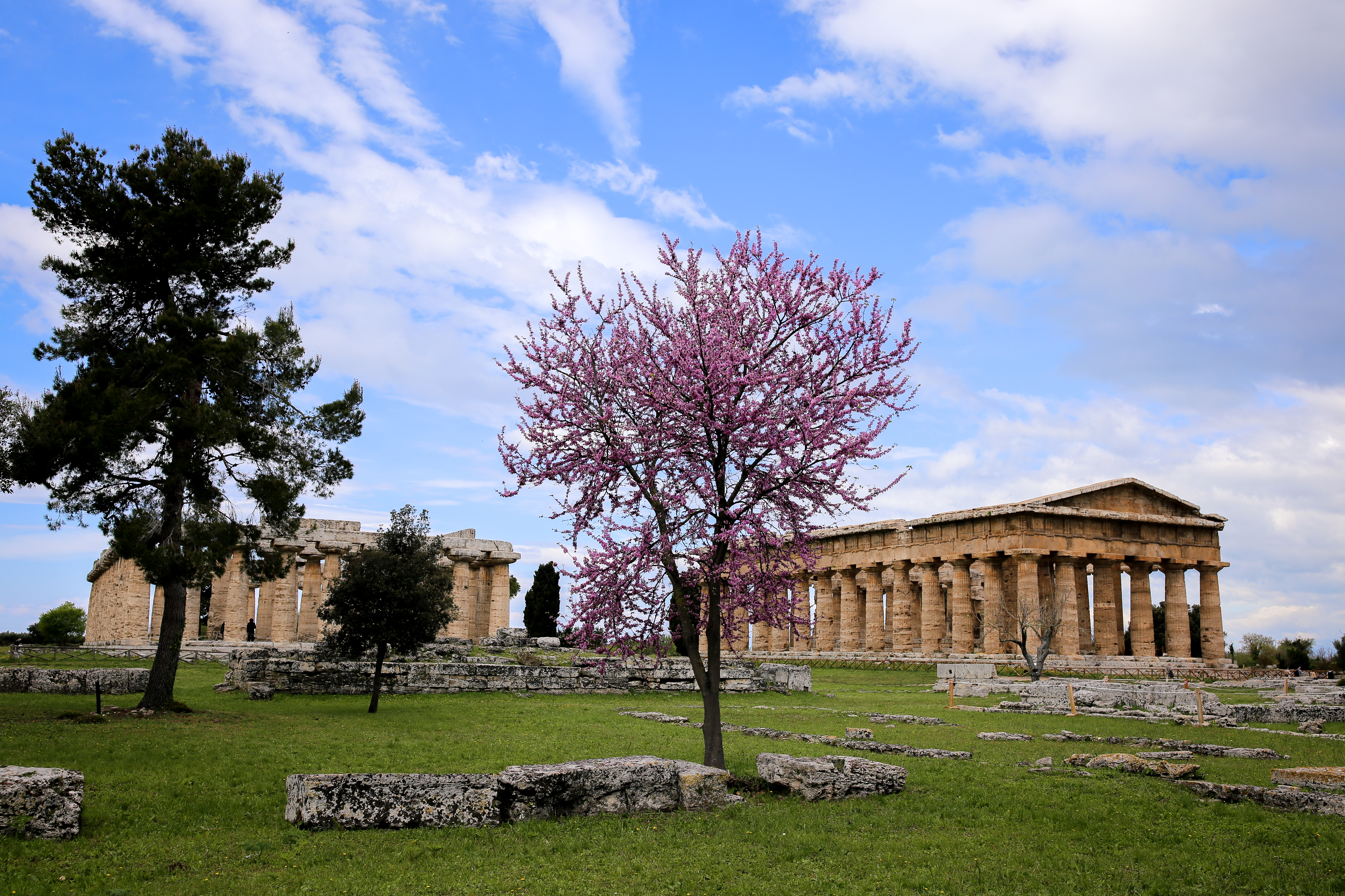 Niūriai didingos Pesto (graikiškosios Poseidonijos) šventyklos.