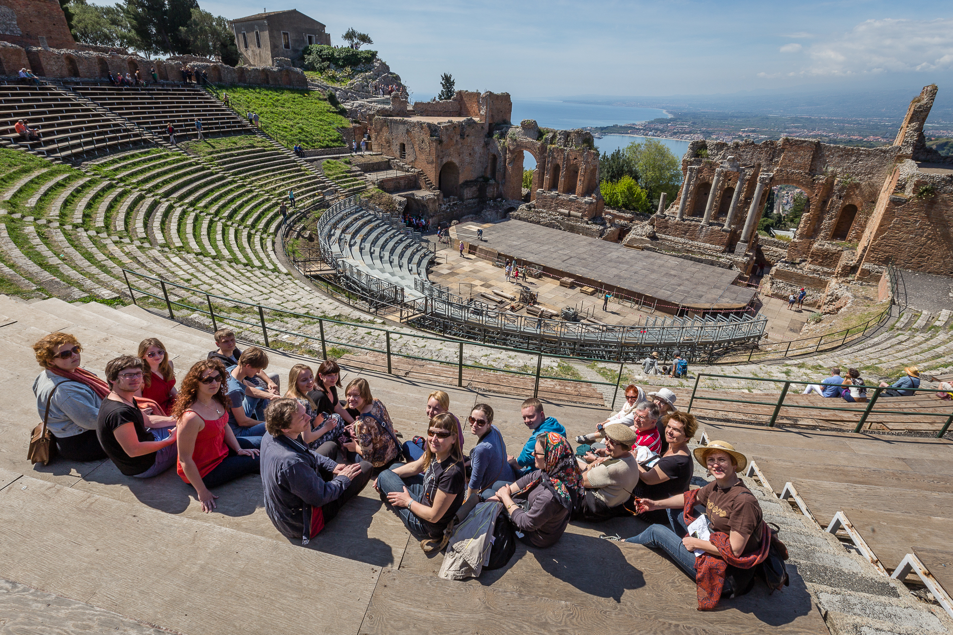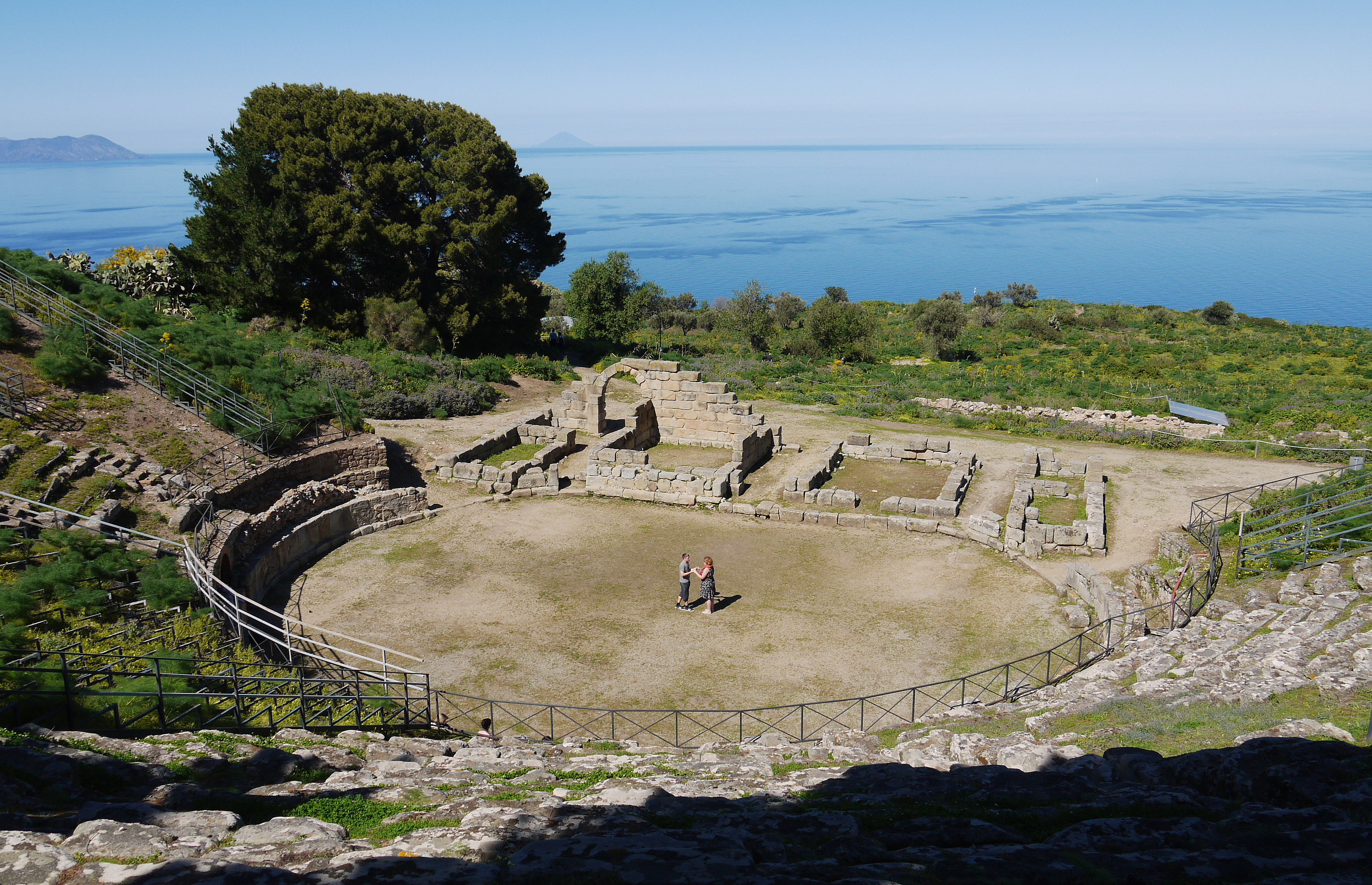 Improvizuotas spektakliukas Timdaridės (dab. Tindari) teatre. Tolumoje – Ajolo salos, kuriose lankėsi Odisėjas.