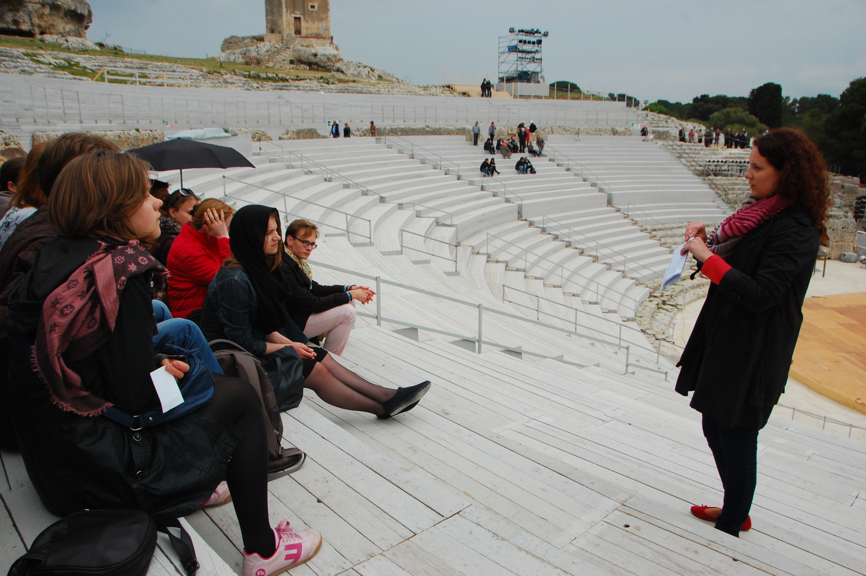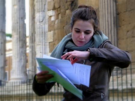 Sirakūzų teatre trečiakursė Gendvilė pasakoja apie tai, kaip Ciceronas Sirakūzuose ieškojo Archimedo kapo.