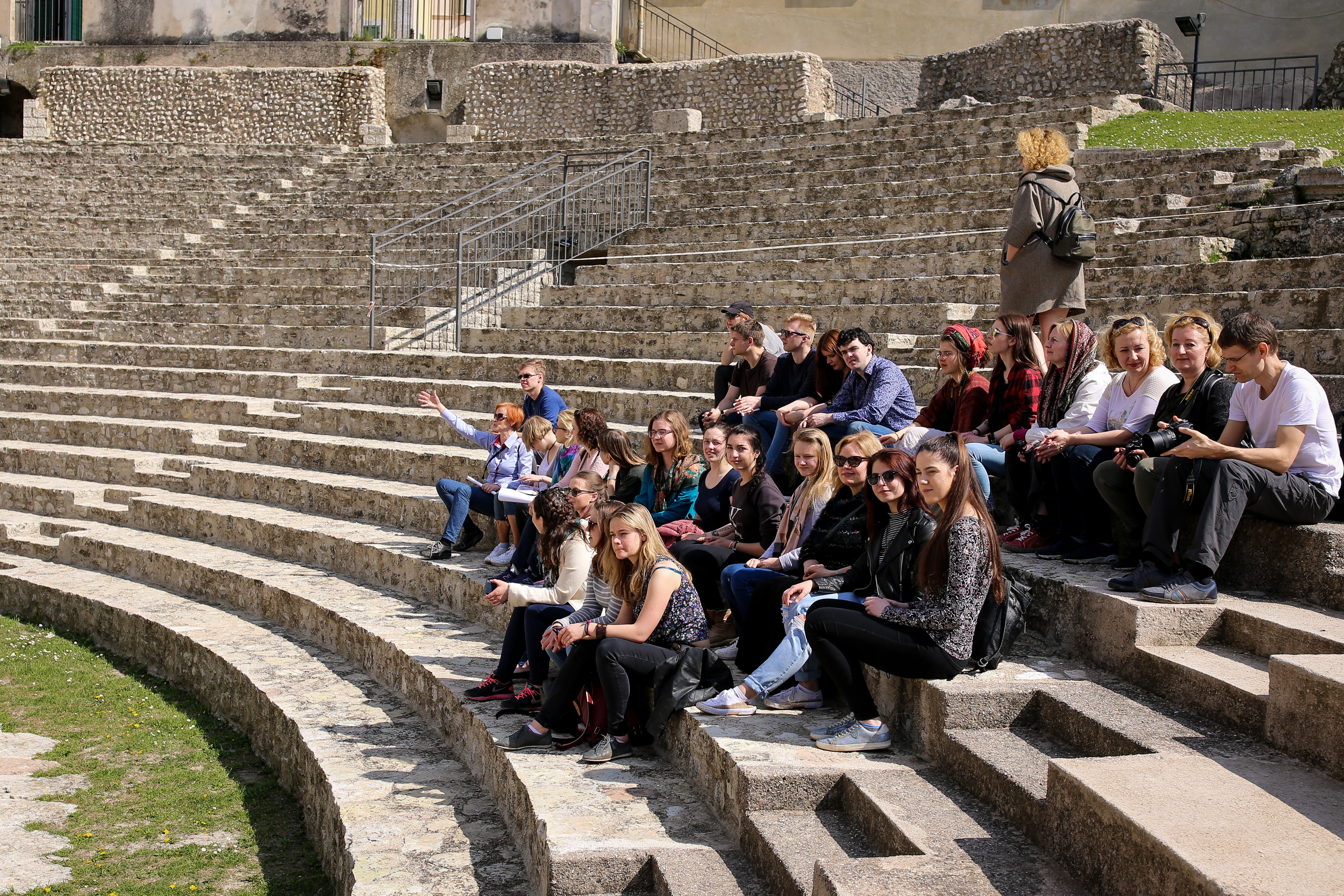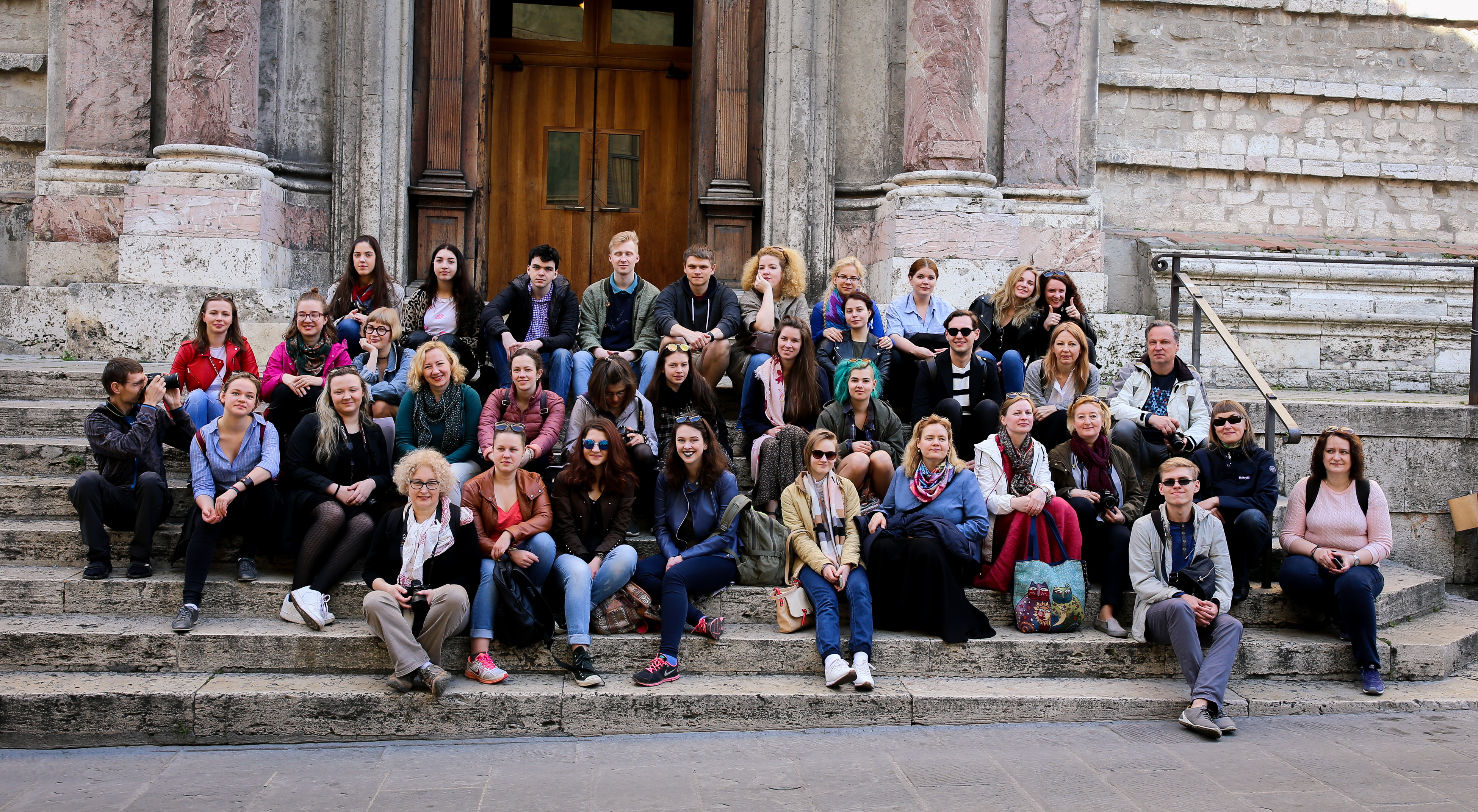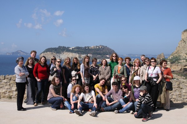 Prie antikinio Prenesto (dab. Palestrinos) miesto vartų. Apačioje iš kairės: aktorius Ferdinandas Jakšys, dėst. Irena Štikonaitė, doc. Dalia Staškevičienė, Gabija Kučinskaitė, Igoris Safonovas (Ba 2), Edita Gedgaudaitė (Ba 3), Gabija Daukšaitė (Ba 4), Inga Jakimčikaitė (Ba 1), Irena Zabarauskaitė (Ba 2); antroje eilėje iš kairės: Rasa Stukonienė, Ineta Zubavičienė (Ma 1), Inga Šedbaraitė (Ma 1), doc. Arūnė Arbušauskaitė (Klaipėdos universitetas), Justina Kučinskaitė (istorijos Ba 4), dėst. Anna Maciūnienė, Irena Ūbienė, Martynas Kučinskas, lekt. Audronė Kučinskienė, lekt. Jovita Dikmonienė, Laura Vilkaitė (italų fil. Ba 1), Eglė Katinaitė (italų fil. Ba 1), Gintė Medzvieckaitė (Ba 4), Giedrė Gaidelytė (Ba 3), Indrė Trapnauskaitė (Ba 3), Renata Papšytė (Ba 2), Rimantas Patašius, Veronika Gerliakienė, Ieva Gerliakaitė.