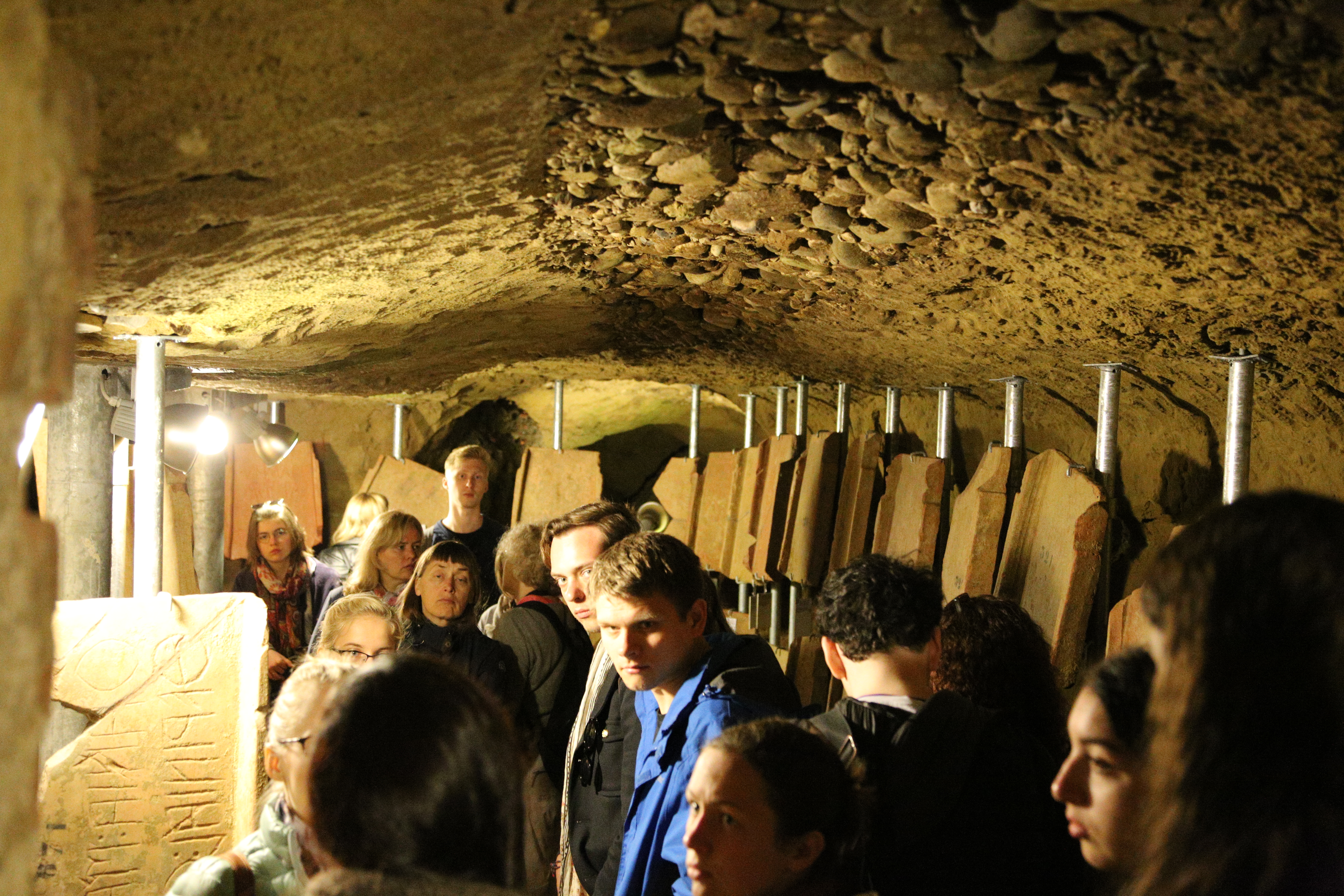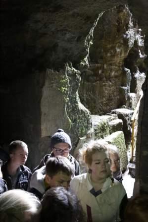 Mikėnai. Antro kurso klasikės Milda ir Gintė tunelyje, vedančiame į Mikėnų vandentiekio cisterną (apie 1200 m. pr. Kr.). Cisterna yra 18 metrų gylyje, tačiau tunelyje nėra jokio apšvietimo, todėl be elektrinio žibinto giliau nusileisti neįmanoma.