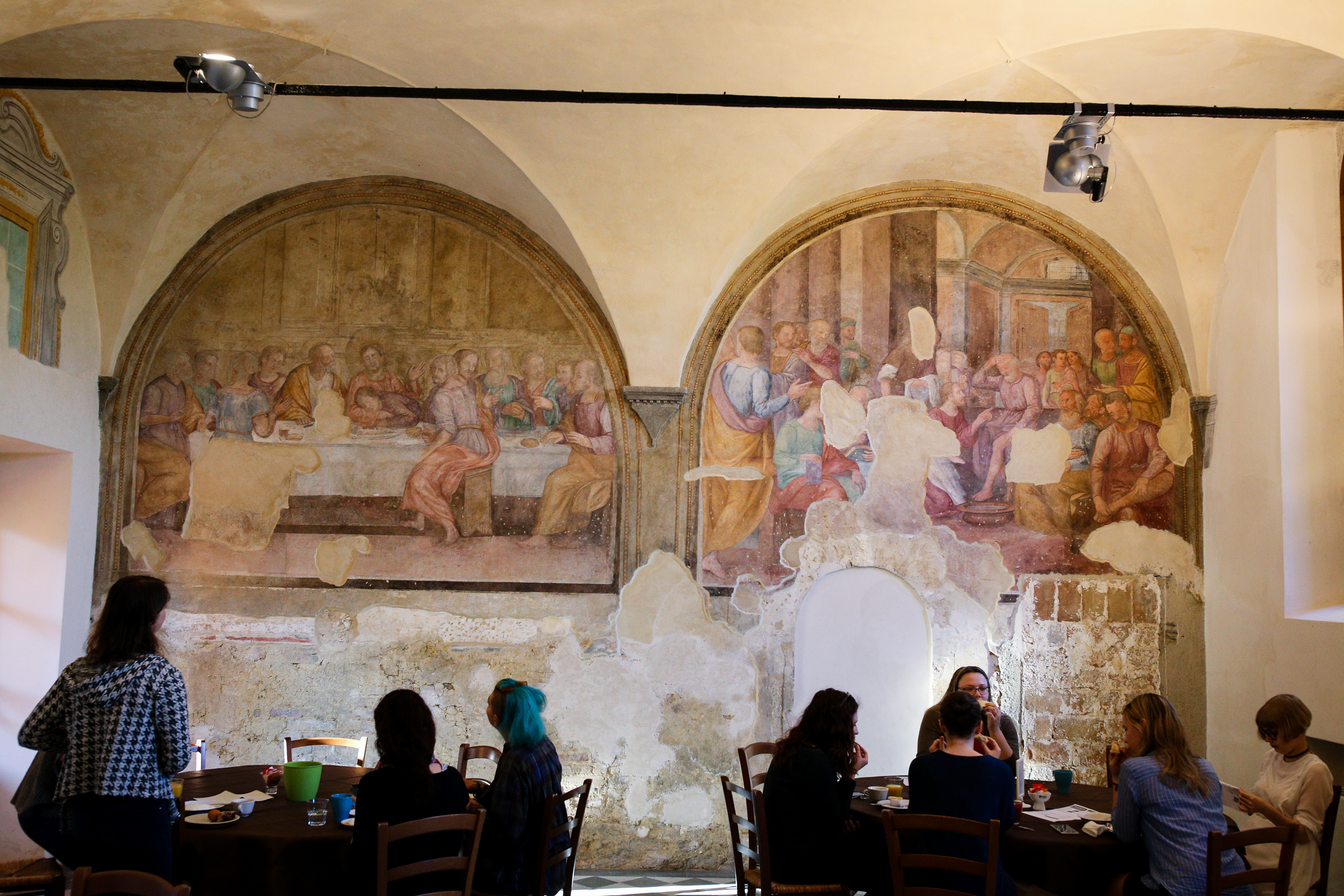 Pusryčiai vienoje iš nakvynės vietų – buvusiame vienuolyne (Chiostro della Monache, Volterra).