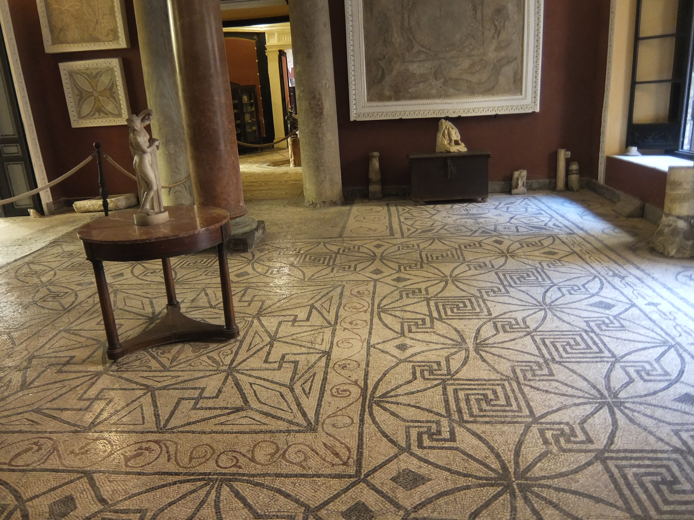 ...ir leistų visokiais rakursais pažiūrėti gausią romėniškų mozaikų kolekciją. Iš apačios...