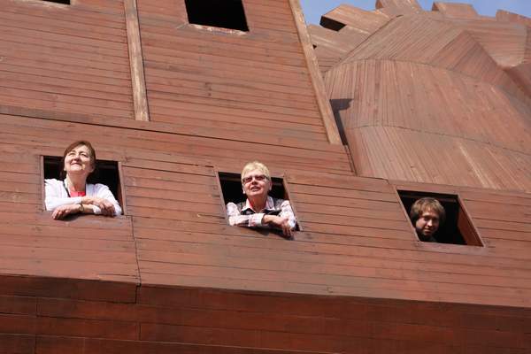Profesorės Eugenija Ulčinaitė ir Evalda Jakaitienė išbando Trojos arklį.