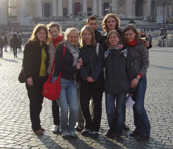 Grupė studentų Vatikane, Šv. Petro aikštėje.