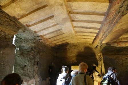 Vaikštome po Tarkvinijų (dab. Tarquinia) Monterozzi nekropolį, apžiūrinėdami etruskų kapavietes su nuostabia sienų tapyba.