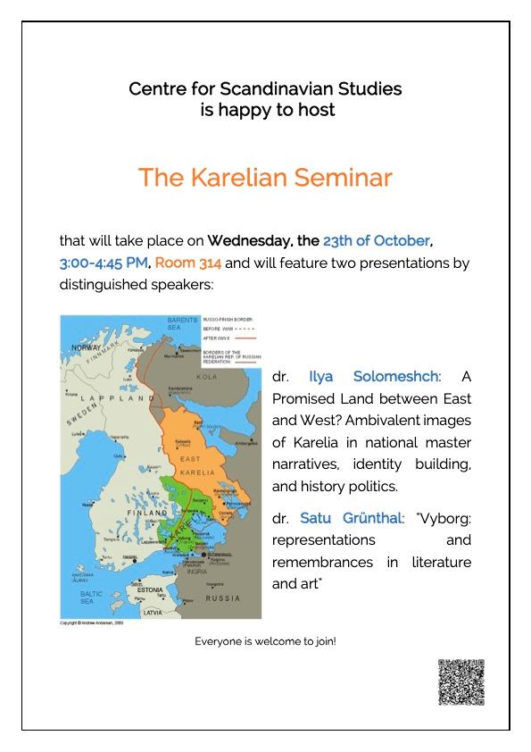 - The Karelian seminar will take place on 23rd of October, at 15:00, in Room 314. More information here.