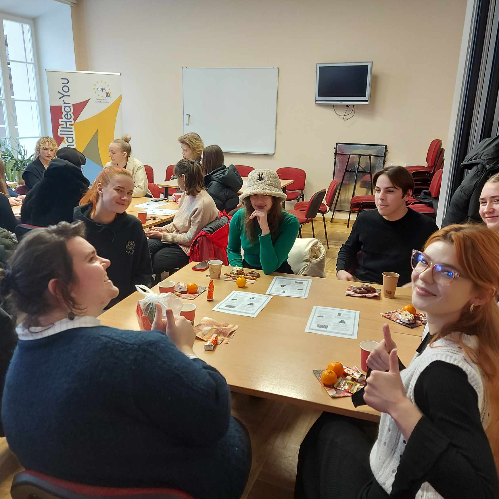 Am Mittwoch, den 13.12.2023, veranstaltete der Lehrstuhl für Deutsche Philologie der Universität Vilnius mit freundlicher Unterstützung der Deutsch-Baltischen Zukunftsstiftung einen weihnachtlichen Nachmittag für die Deutschstudierenden. Beinahe 30 Studierende verschiedener Deutschniveaustufen nahmen daran teil und nutzten die Gelegenheit, etwas über deutsche Weihnachtstraditionen zu erfahren und sich gegenseitig besser kennenzulernen. Die Studierenden versuchten sich außerdem in nach Niveaustufen gemischten Gruppen an weihnachtlichen Wortspielen und konnten dadurch u. a. ihren Weihnachtswortschatz spielerisch erweitern. Die Spiele waren sehr abwechslungsreich und bestanden beispielsweise aus einem weihnachtlichem Kreuzworträtsel, dem Verfassen eines Wunschzettels und einem deutschen Weihnachtslied als Lückentext. Zusätzlich probierten die Studierenden süße und herzhafte deutsche Weihnachtsspezialitäten wie Christstollen und Lebkuchen. Es war ein rundum gelungener Nachmittag, der Lust auf mehr macht.
