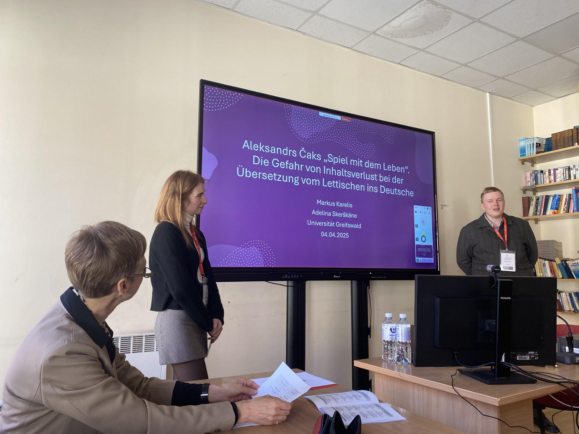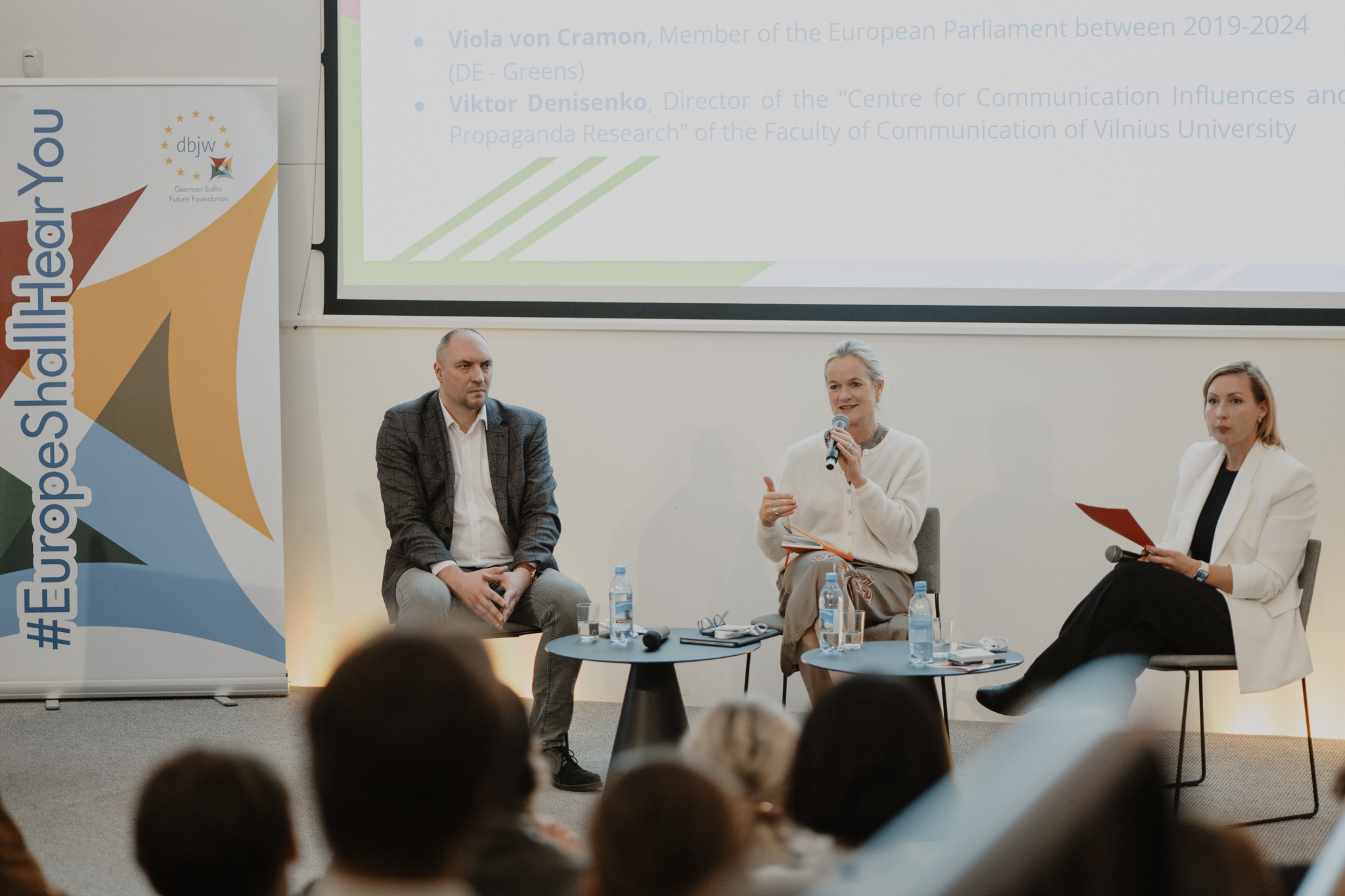 Gimnazijos I ir II klasių moksleiviams, besimokantiems vokiečių kaip antrosios kalbos, Daumantas Katinas papasakojo apie Germanistikos studijas Vilniaus universiteto Filologijos fakultete, studijų ir karjeros galimybes su vokiečių kalba, Vokiečių filologijos katedros iniciatyvas; Indrė Aukštikalnienė susitikimo dalyvius supažindino su Vokietijos-Baltijos šalių ateities fondu, jo misija, vertybėmis, aktualiais projektais, seminarais ir kitomis iniciatyvomis jaunimui. Vėliau moksleiviai kartu su iniciatyvos organizatoriais ir vokiečių kalbos mokytoja Rita Skroblyte dėliojo domino su vokiškais prekių ženklais ir informacija apie Lietuvos ir Vokietijos santykius.