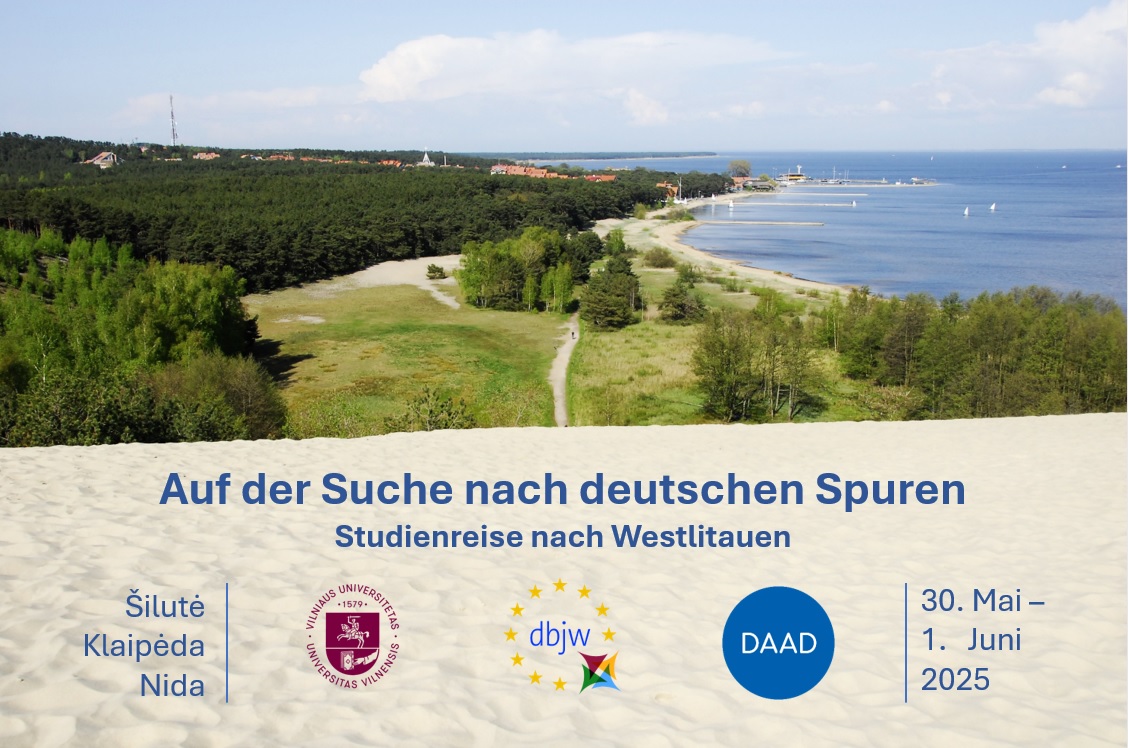 Am 30. Mai 1. Juni 2025 begibgt sich der Lehrstuhl für Deutsche Philologie der Universität Vilnius (VU) - in Kooperation mit dem litauischen Landesbüro der Deutsch-Baltischen Zukunftsstiftung (DBJW) und mit dem Deutschen Akademischen Austauschdienst (DAAD) – auf die Suche nach deutschen Spuren und organisiert eine Studienreise nach Westlitauen.