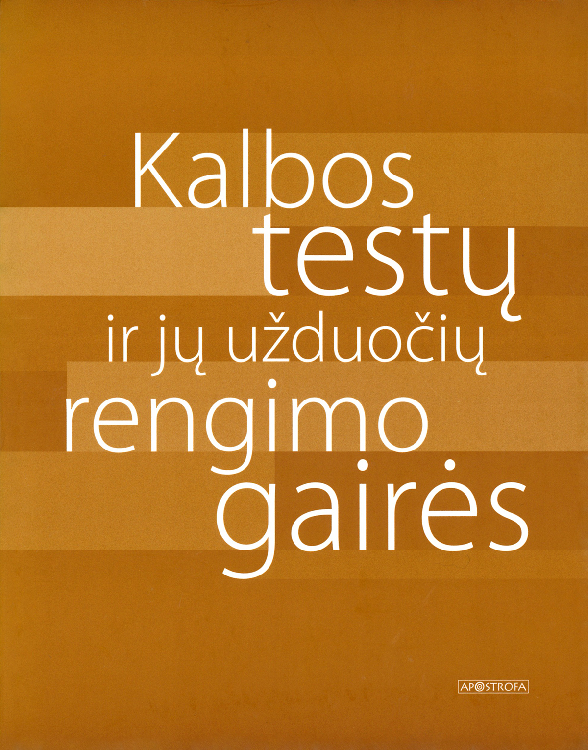Parengtos Europos kalbų testuotojų asociacijos (ALTE) darbų pagrindu. Leidinyje bendrais bruožais supažindinama su testų teorija, aptariami testų kūrimo etapai, pateikiama užduočių pavyzdžių.