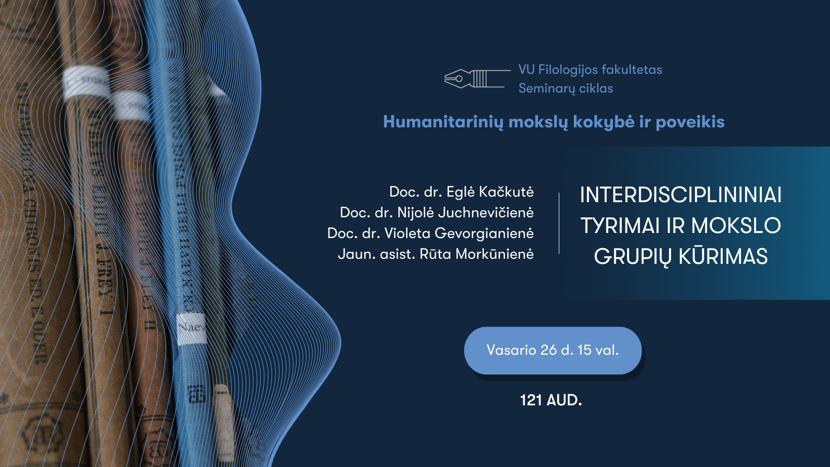 Mokslo daktaro laipsnį įgijęs Notingamo universitete, o podoktorantūros stažuotę baigęs Vilniaus universitete, doc. Davide Castiglione nusprendė į literatūrinių vaizdinių temą pažvelgti iš naujos perspektyvos. Modernistinės poezijos stilistikos ir poetikos srityse besispecializuojantis anglistas pirmiausia pabrėžia, kad nors dauguma žmonių geba patirti mentalinius vaizdinius skaitydami ar net klausydamiesi teksto, kai kuriems skaitytojams tokie vaizdiniai vis dėlto taip lengvai neiškyla. Toliau Vilniaus universiteto docento žvilgsnis krypsta į tirštą mokslinių diskusijų apie vaizdingus literatūrinius aprašymus istoriją, siekiančią Aristotelio laikus.