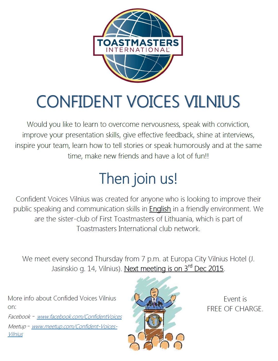 Kviečiame į anglakalbį viešojo kalbėjimo klubą