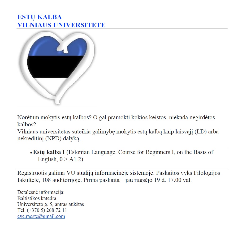 Kviečiame mokytis estų kalbos